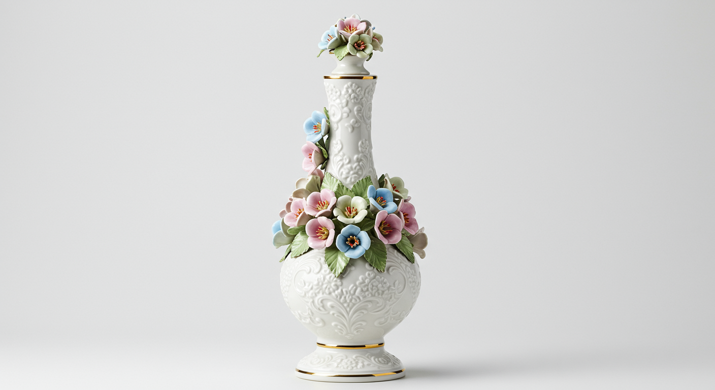 Antique Paris Porcelain Flower Encrusted or Schneeballen Bottle by Jacob Petit