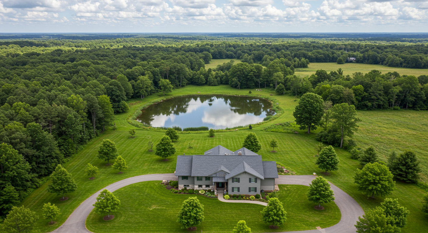 The Details: Come home to River Cross, a 55-acre estate in the heart of eastern Michigan’s Metamora Hunt Country. Take in woodlands and meadows that reach as far as the eye can see, and enjoy the comforts of a built home designed by Frank Lloyd Wright disciple, John Vinci. This epic property also includes a barn, pasture and a 2.5-acre aerated pond and beach.