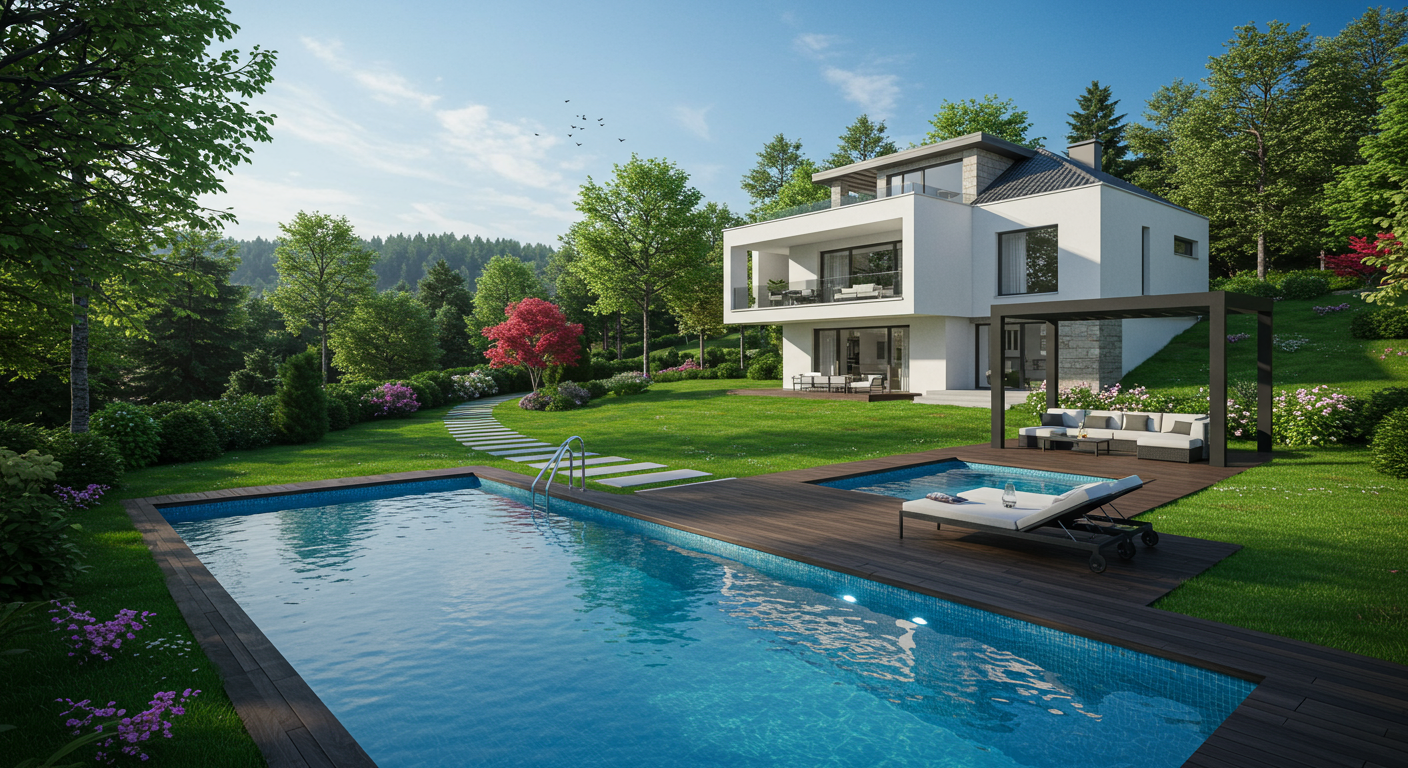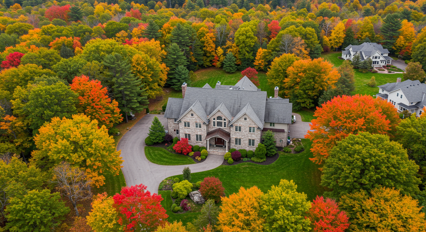 The Details: Moderately secluded on 1.36 acres, this estate resides in a leafy neighborhood court with mature woodlands that provide peace and privacy. The dreamy, quiet yard presents a patio, deck areas, a pool and outdoor kitchen with pizza oven.