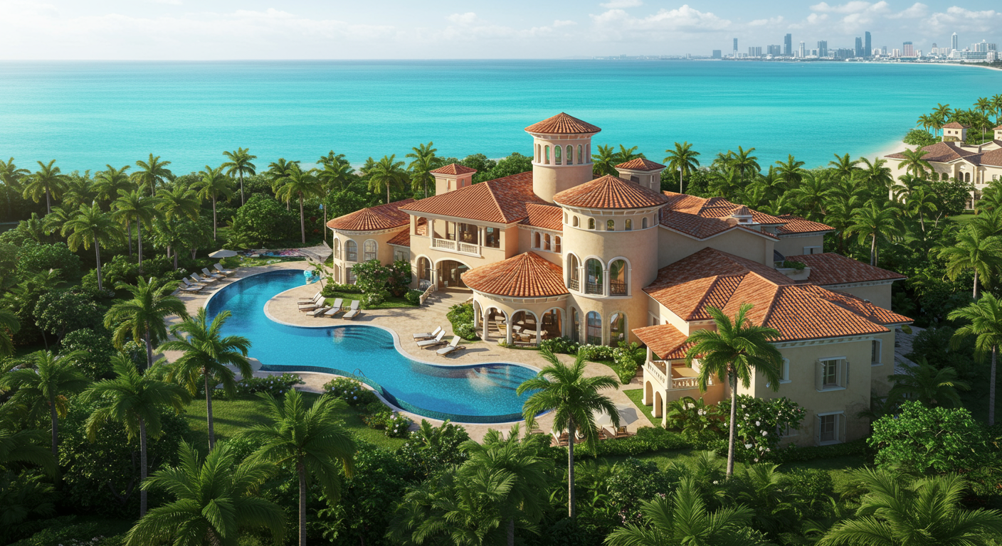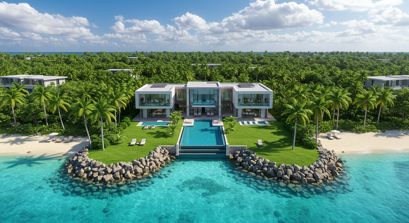 The Details: Nestled in an exclusive gated community between the Caribbean Sea and Laguna Morales, this luxurious villa boasts 17,000 square feet of living space and 660 feet of private beachfront. The grand foyer sets the tone for the grand lifestyle that awaits in this residence, with soaring ceilings, handcrafted wood details and a dramatic chandelier. Every room beyond continues to astonish, from the gourmet kitchen to the tranquil primary suite with its own elevated library and custom walk-in closet.