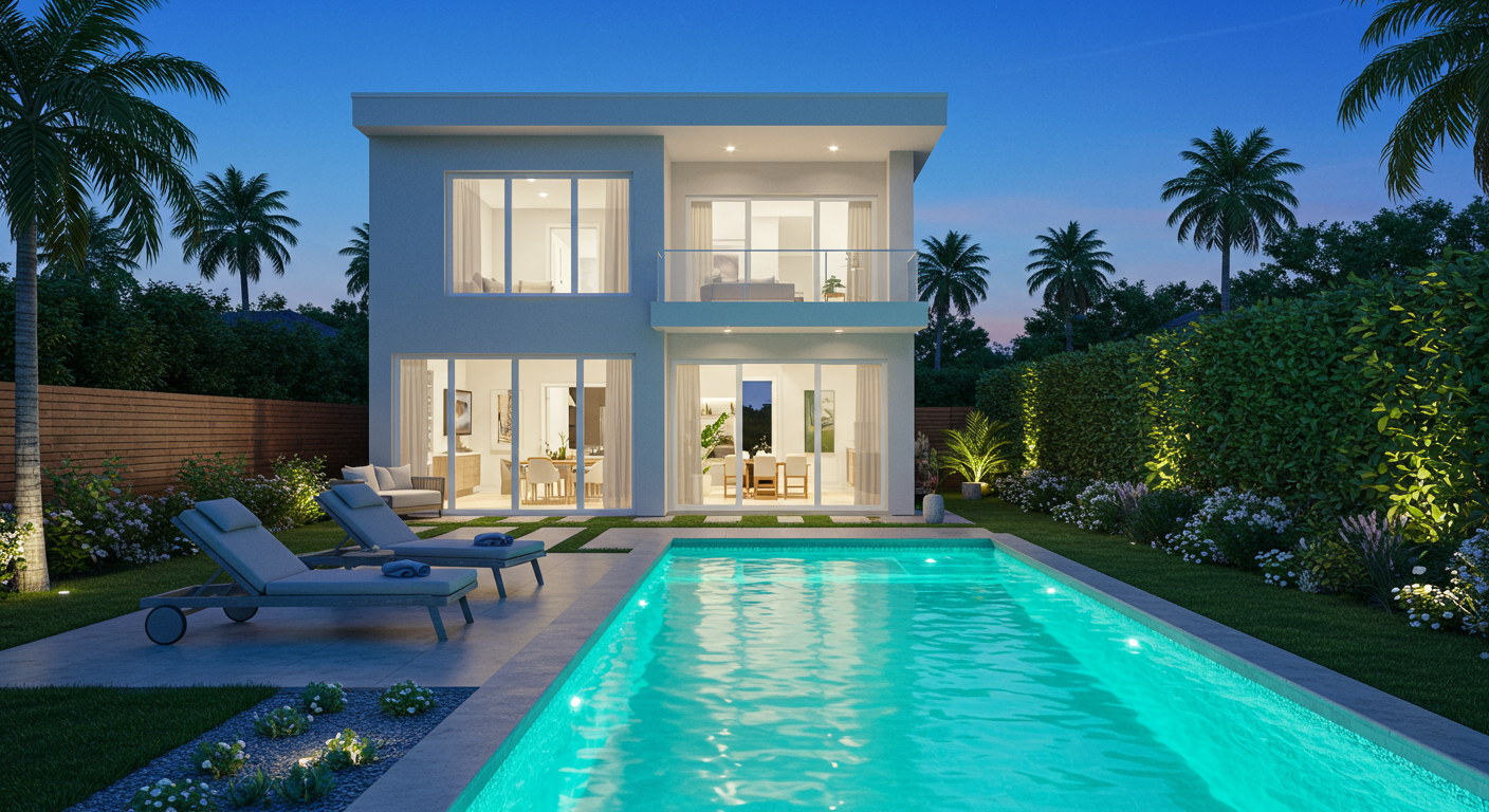 The Details: Envisioned by Brissette Architects with spectacularly stylish interiors by JSF Designs, this modern sanctuary is enough to make anyone believe in love at first sight. An entertainer’s paradise, the main residence features an impressive catering kitchen in addition to the gourmet kitchen, a show-stopping dining room, a wine room that accommodates four people, a 10-person home theater and an architectural audio system. The fully equipped gym and palatial primary suite invite easy rest and rejuvenation once guests leave.