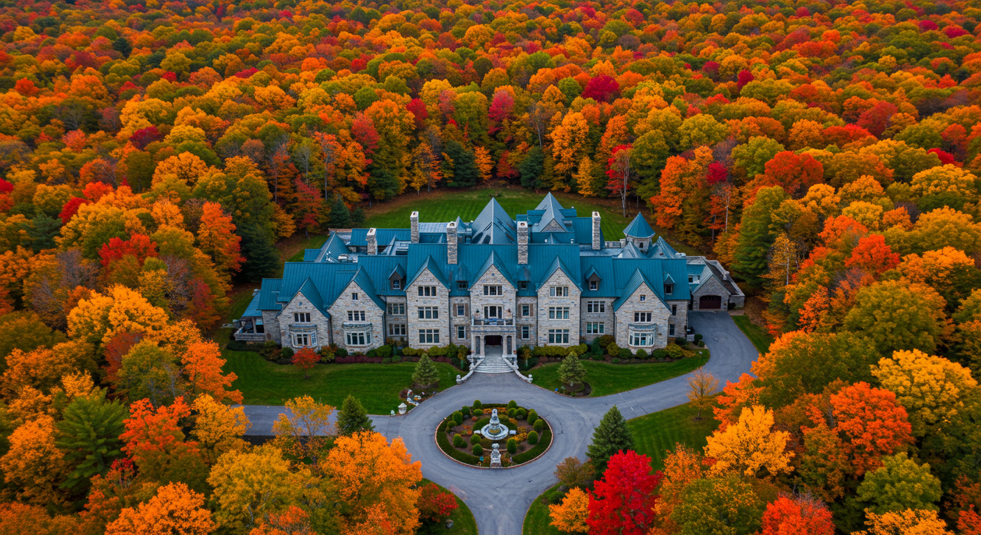 The Details: A distinguished architectural triumph by Tony Paskevich, this chalet rests on 14 acres overlooking the Chagrin River Valley. The 12,000-square-foot residence has been outfitted with every amenity imaginable, including an entire recreation wing with a professional bowling alley and billiards space. Outdoors, there’s even a private ski slope with a chair lift.
